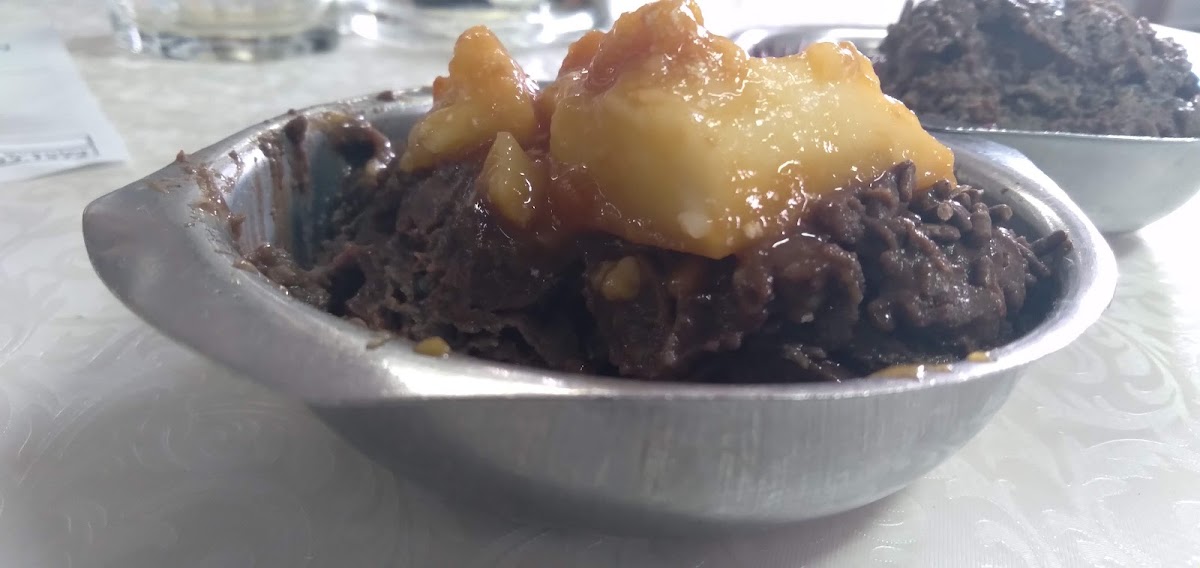 Comida boa, a carne assada muito boa aipim manteiga, 10 opções de sobremesa, doce de melancia,laranja, maçã, sagu delicioso,comida quente, pessoas queridas.